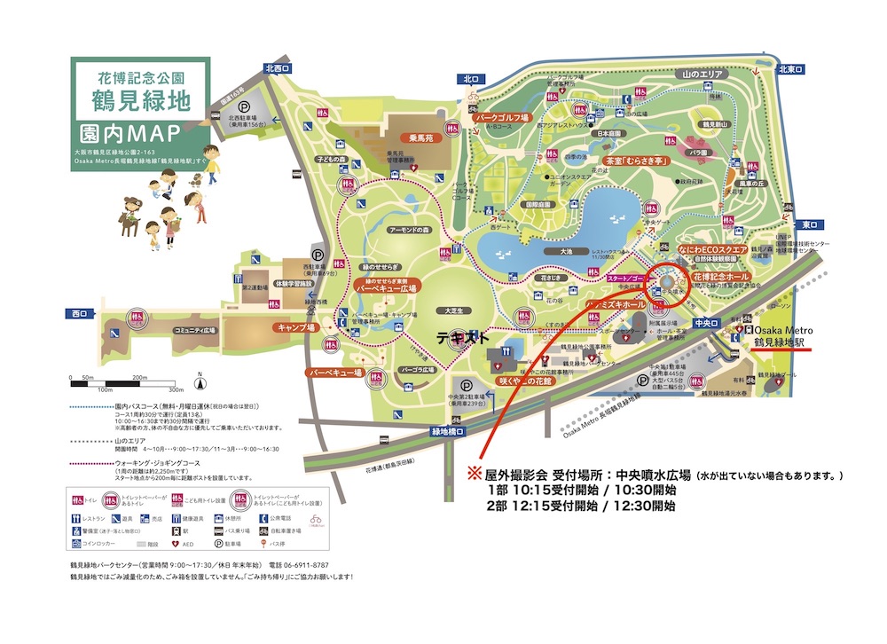 花博記念公園鶴見緑地 中央口  下記地図の赤丸印が受付場所